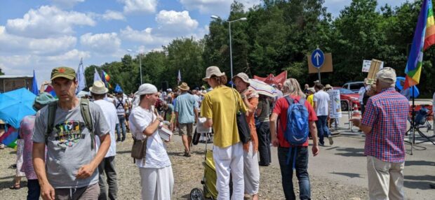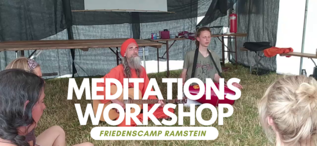 Meditationsworkshop auf dem Friedenscamp in Ramstein 2023.