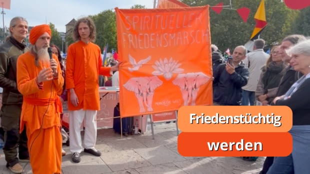 15.000 Demonstranten für den Frieden – und 30 Menschen, die mit Gesang, Tanz und Meditation die Spiritualität in die Großdemo brachten, die gestern in Stuttgart stattfand.