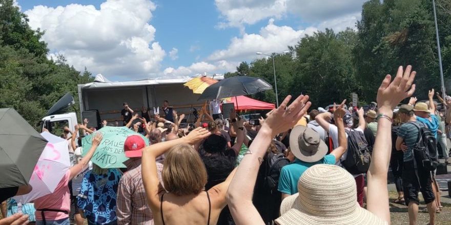 Kilez More, Morgaine und Äon spielten ihren Song “Wir könnten” heute auf der Stopp Air Base Ramstein Demo.