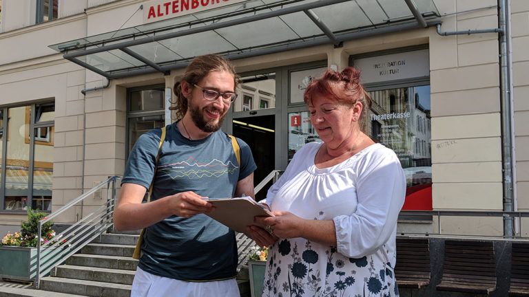 Sahin Azbak spricht mit Didi Ananda Devapriya über ihre Sozialprojekte in Rumänien.
