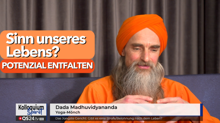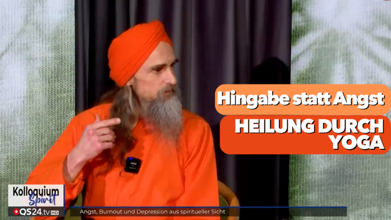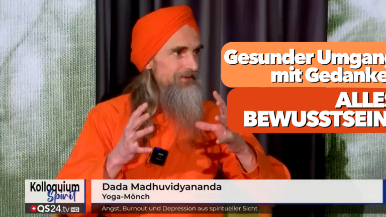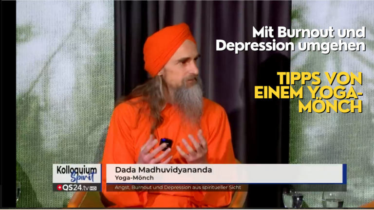 Dada Madhuvidyananda beim schweizer Gesundheitsfernsehen QS24 im “Spirit Kolloquium” darüber, wie wir uns durch yogische Praktiken von Angst befreien können